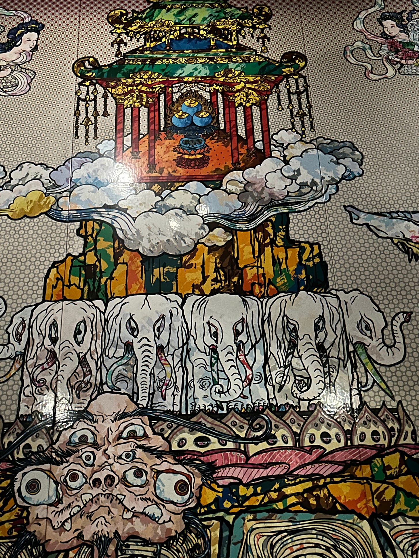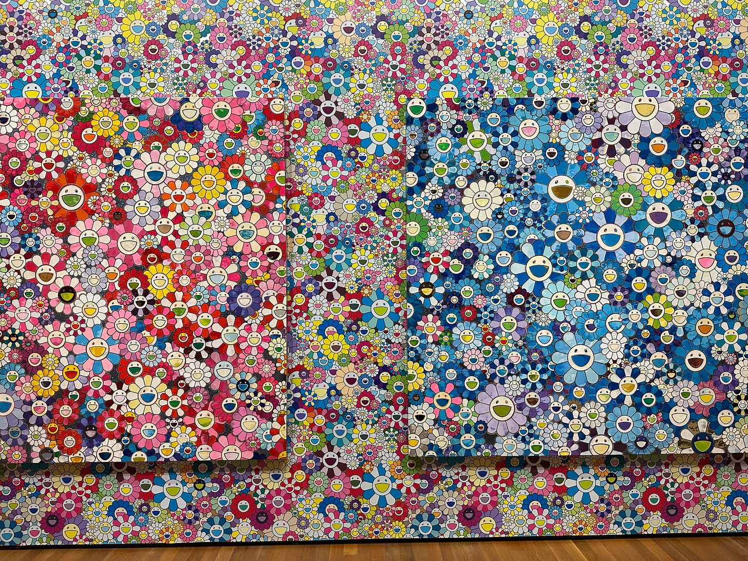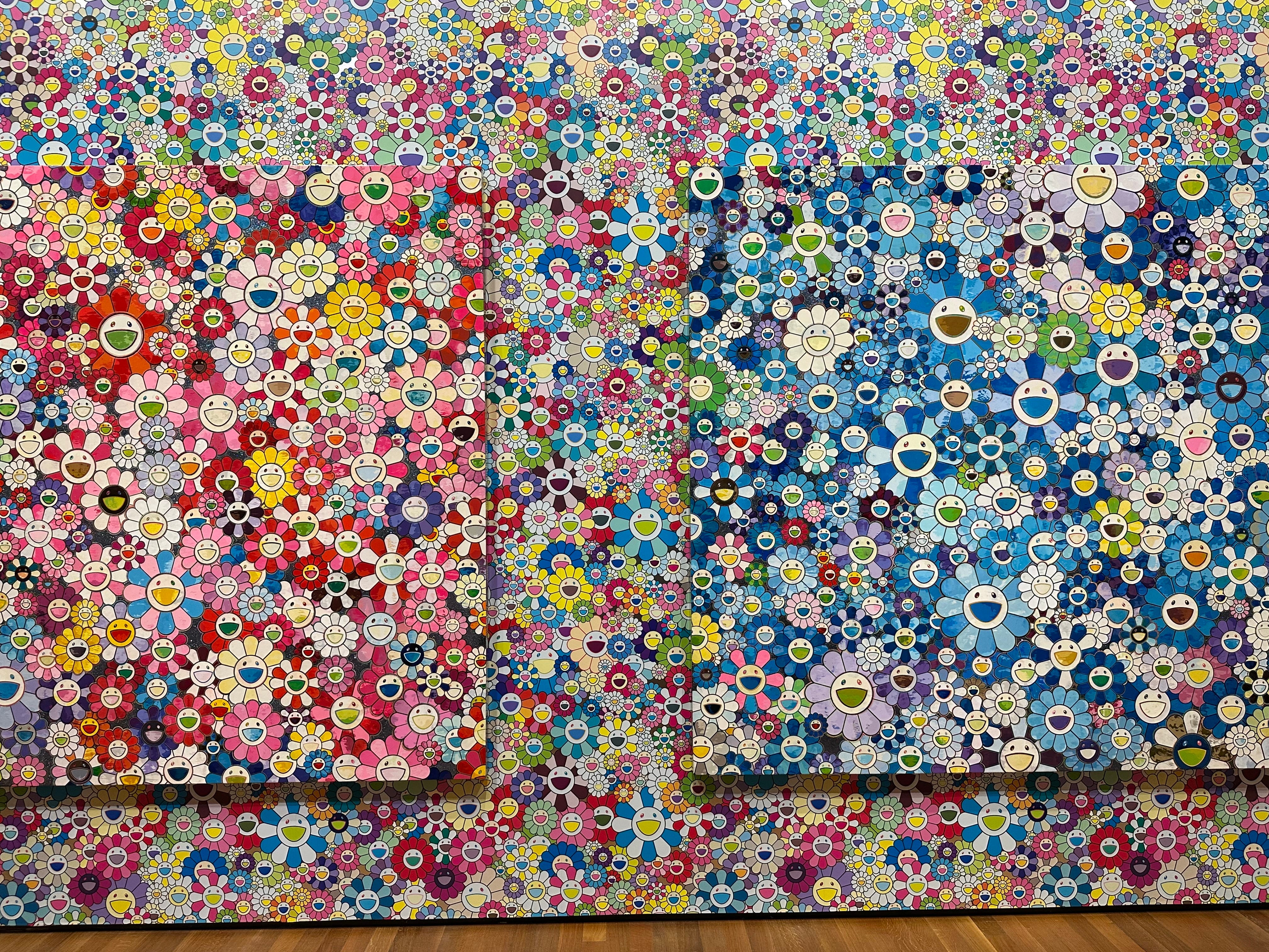 In my new effort to build frequent flier points as I fly solo into life, I took myself to see Takashi Murakami’s “Stepping on the tail of a rainbow.” The Japanese artist paints a smile of the face of every visitor. It’s a wonderland of whimsy.